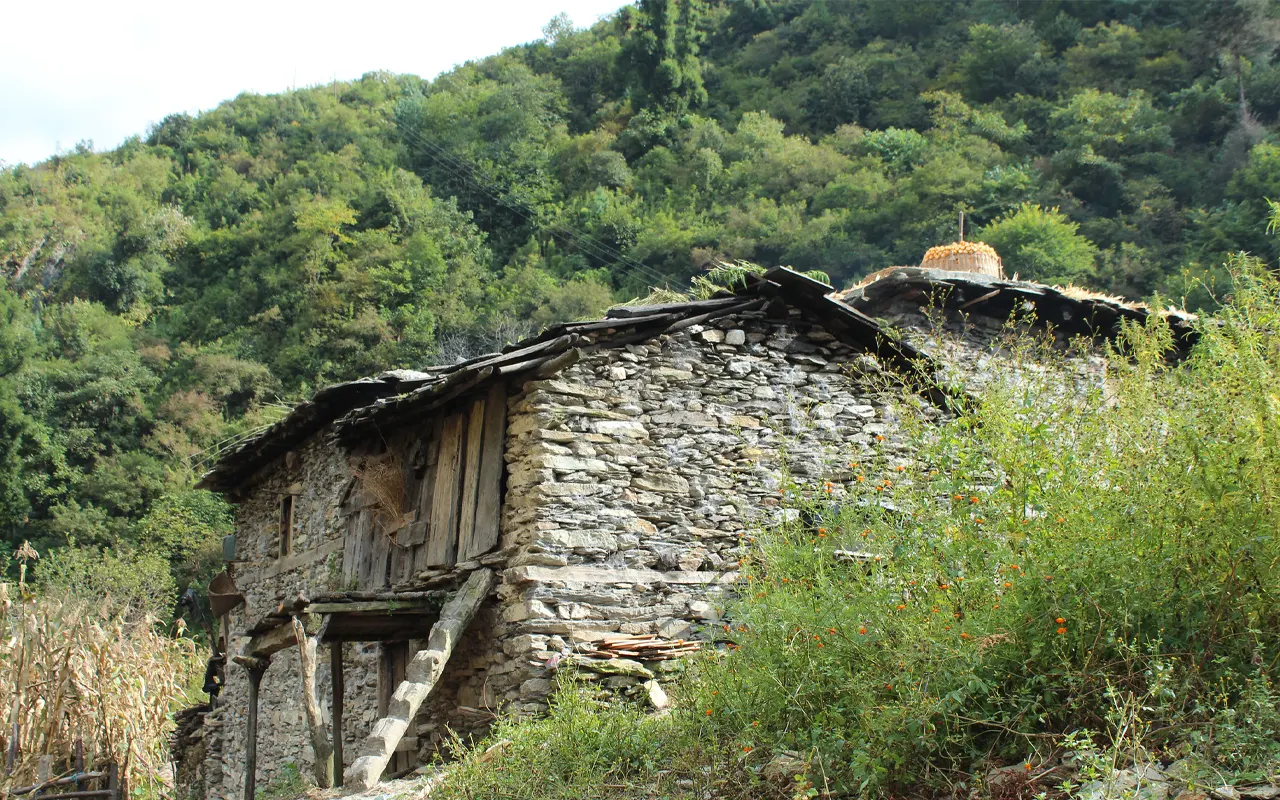 Today is a short and easy trekking day, with only a small altitude change from 1,950 m / 6,397 ft at Mangri to 2,095 m / 6,873 ft at Gamgadi. The path goes through the small villages and working fields where the local communities cultivate crops and bring up the livestock.