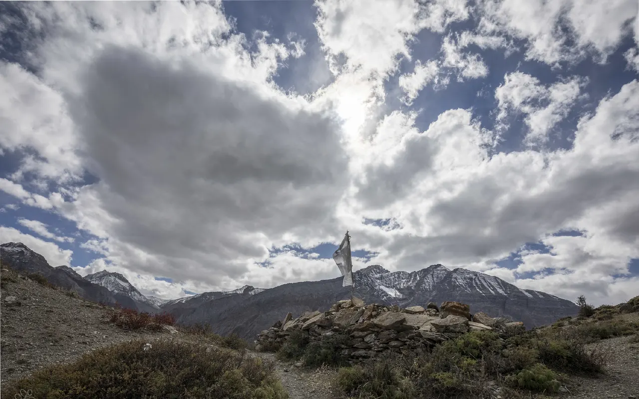 The trail goes high above the river and then goes down. Its landscape is rough and distant, having high mountains and silent valleys. Towards the end of the day, you walk through a serene birch forest until you arrive at Takla Khola, where you sleep at an elevation of 3,785 m / 12,417 ft., which is a relief to your body following the strenuous day of trekking.