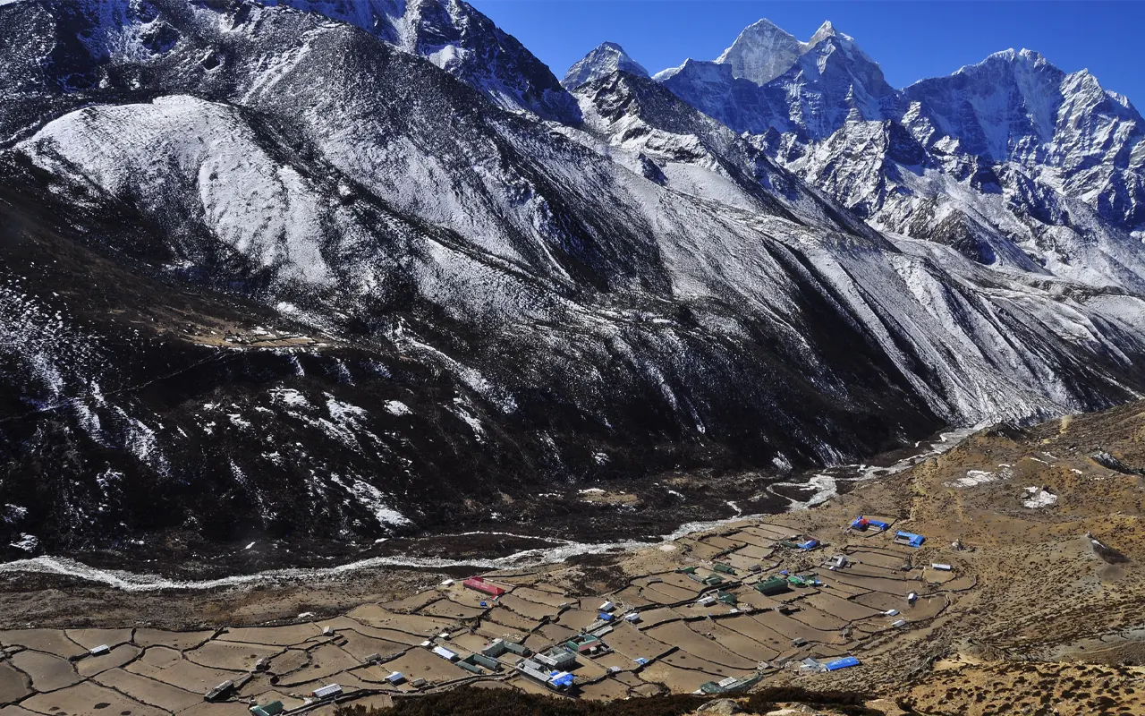 You continue your trek after breakfast through gorgeous scenery with mani walls, chortens, and small villages on this day. You traverse bridges across the Imja Khola and reach a broader valley. The trail then ascends slowly upwards, and the air becomes thinner as you rise higher. Your guide will tell you to walk slowly and drink water frequently.