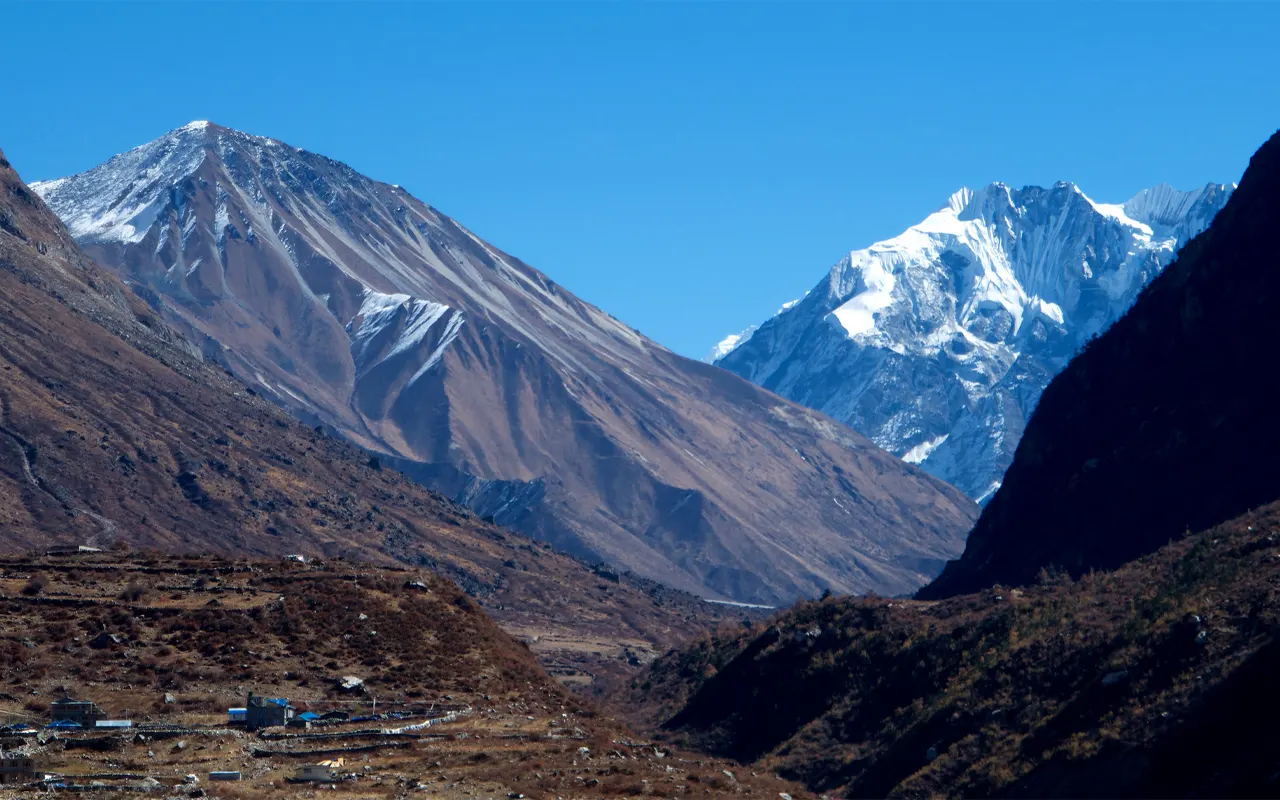 On rising in height, the air becomes thin, and scenes are opened. By midday, you are on the summit of Tserko Ri, and the views from here are unforgettable. We get to see the gigantic icefall of Langtang Lirung closely and get panoramic views of the whole Langtang and Ganesh Himal ranges.