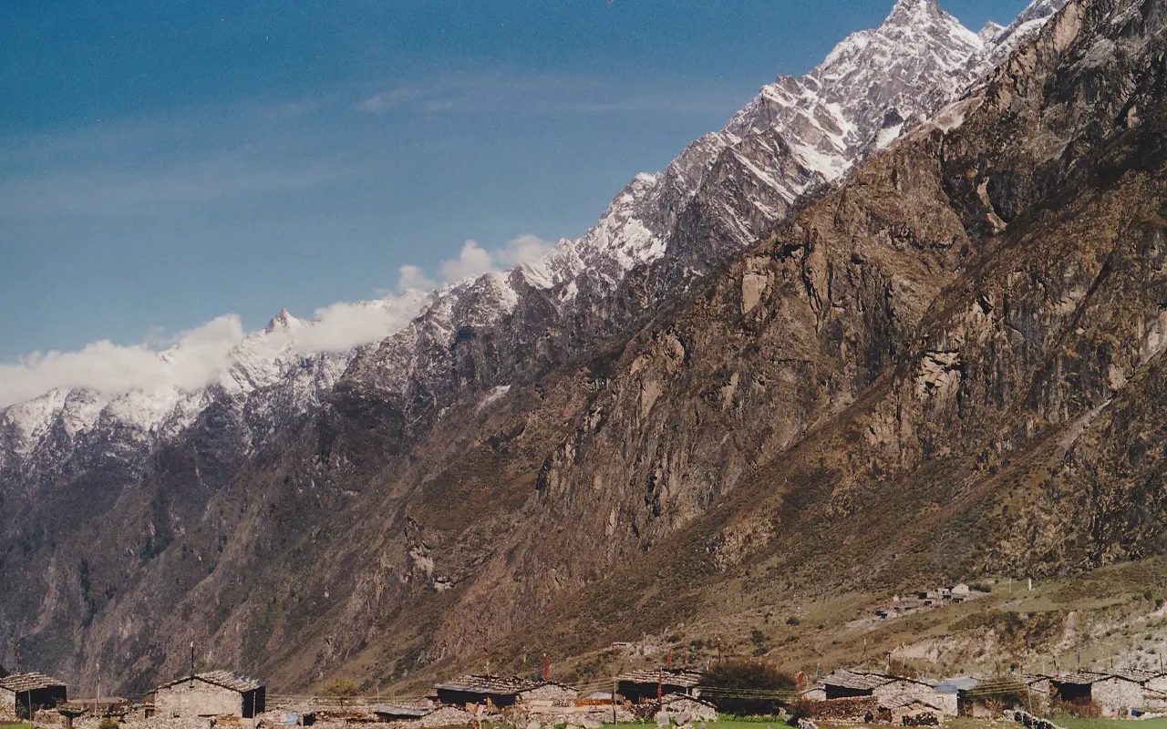 When the valley expands, the tall mountains, including Langtang Lirung, take control of the skyline. The Buddhist influence of Tibetans in the area is very strong, as manifested in traditional stone buildings, prayer flags, mani walls, and monasteries.