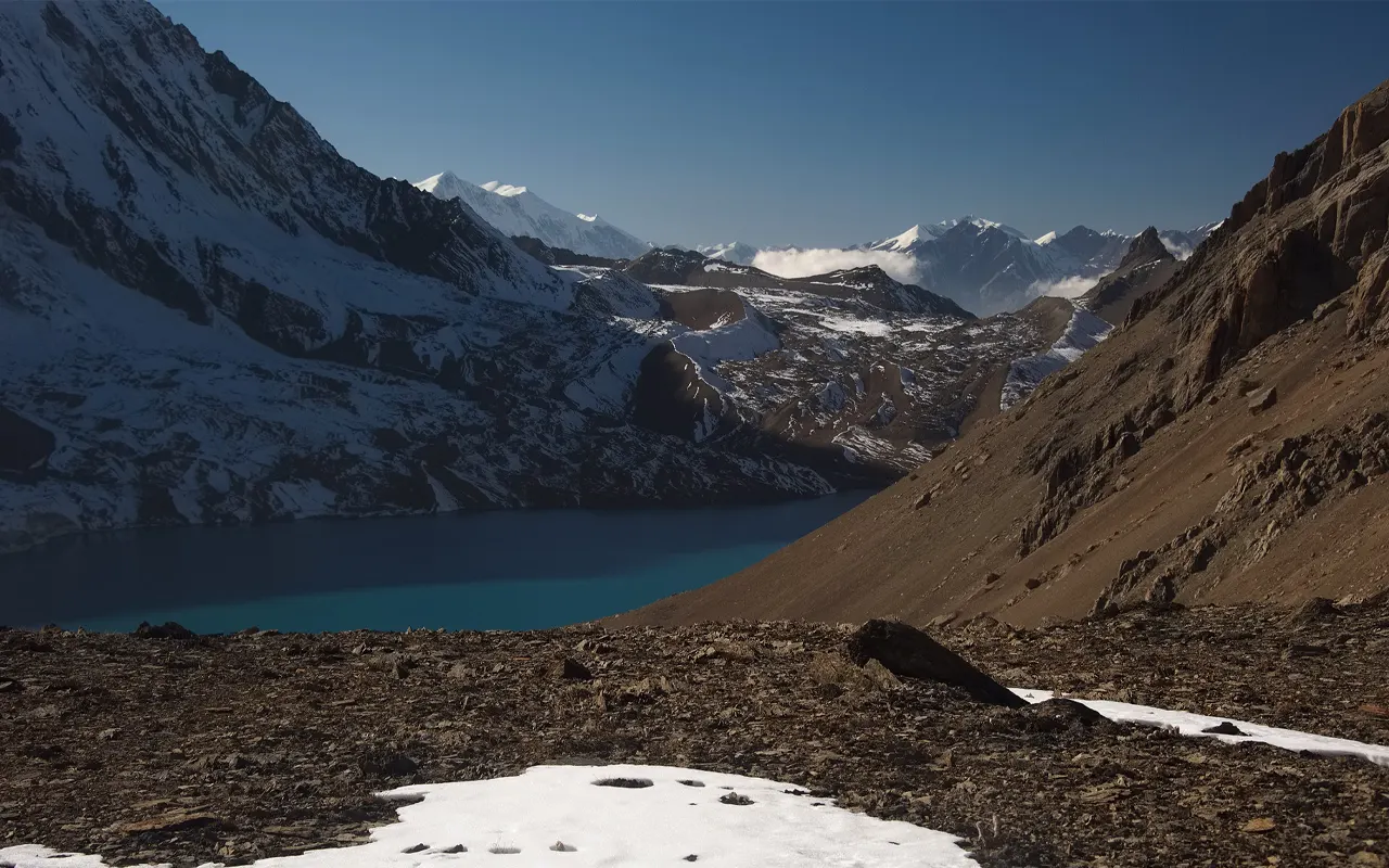 During colder times, snow may occur around Tilicho Lake at 4,920 m / 16,142 ft.